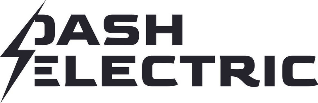 A collection of black and white logo designs for Dash Electric, featuring lightning bolts and sleek designs.